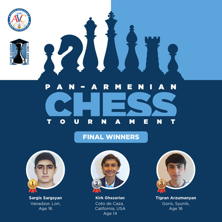 Among the finalists, Third Prize was taken by 16-year old Tigran Arzumanyan of Goris in Armenia’s Syunik province, Second Prize went to 14-year old Kirk Ghazarian of Coto de Caza, California, USA, and First Prize was awarded to Sargis Sargsyan of Vanadzor in Armenia’s Lori province. An official certificate was conferred upon each winner, signed by GM Smbat Lputian, the president of the Chess Academy of Armenia and Dr. Zorian, as president and founder of AVC. In addition, winners received valuable monetary rewards in the form of virtual gift cards.