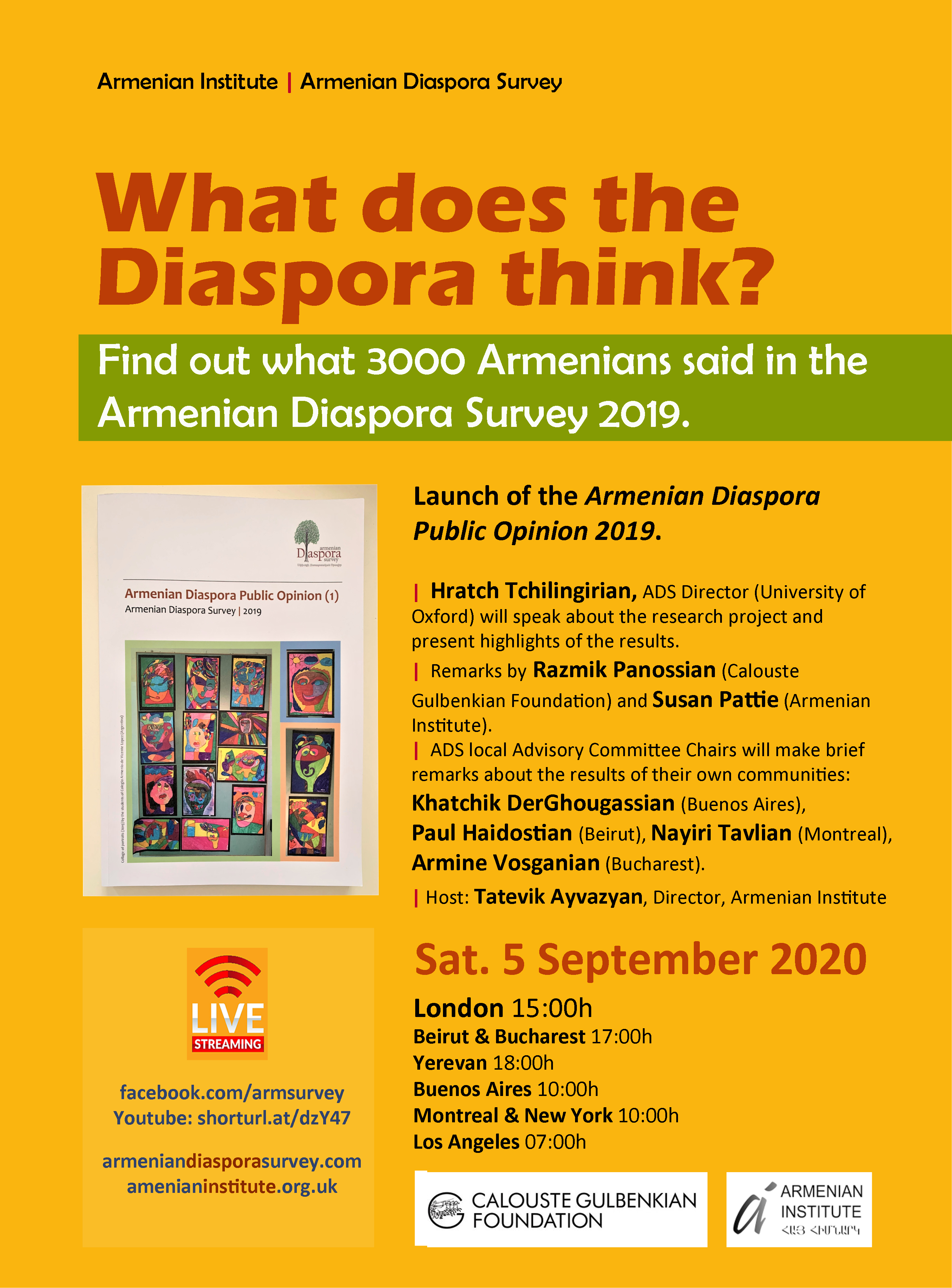 LONDON (27.08.2020)—The results of a major research on public opinion in Diaspora communities will be formally launched at an online event on 5 September.