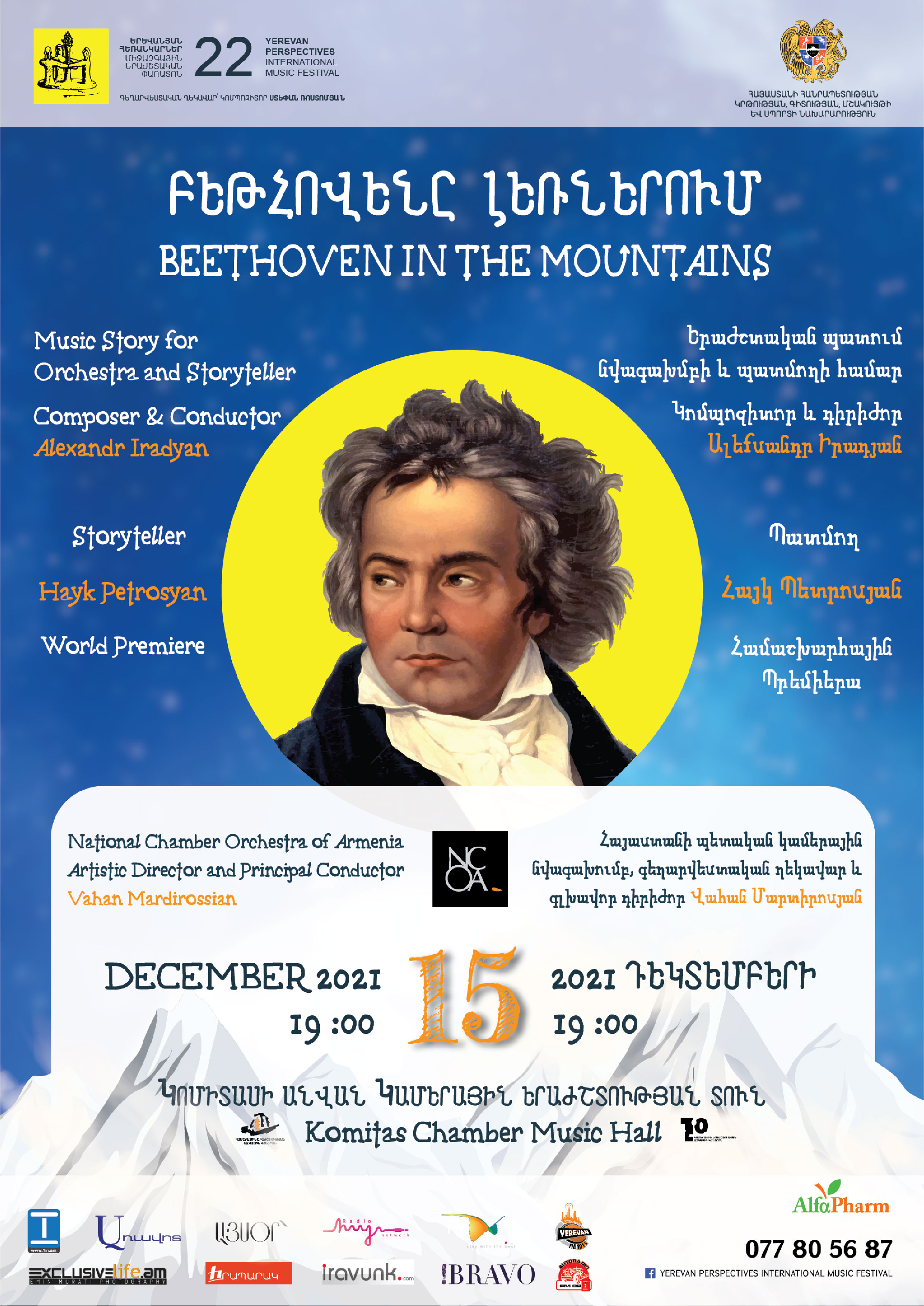 Դեկտեմբերի 15-ին, ժամը 19:00-ին Կոմիտասի անվան կամերային երաժշտության տանը տեղի կունենա Ալեքսանդր Իրադյանի «Բեթհովենը սարերում» ստեղծագործության պրեմիերան։ Այն կկատարի Հայաստանի պետական կամերային նվագախումբը՝ հեղինակի՝ Ալեքսանդր Իրադյանի ղեկավարությամբ, իսկ հեքիաթը կպատմի սիրված դերասան Հայկ Պետրոսյանը։