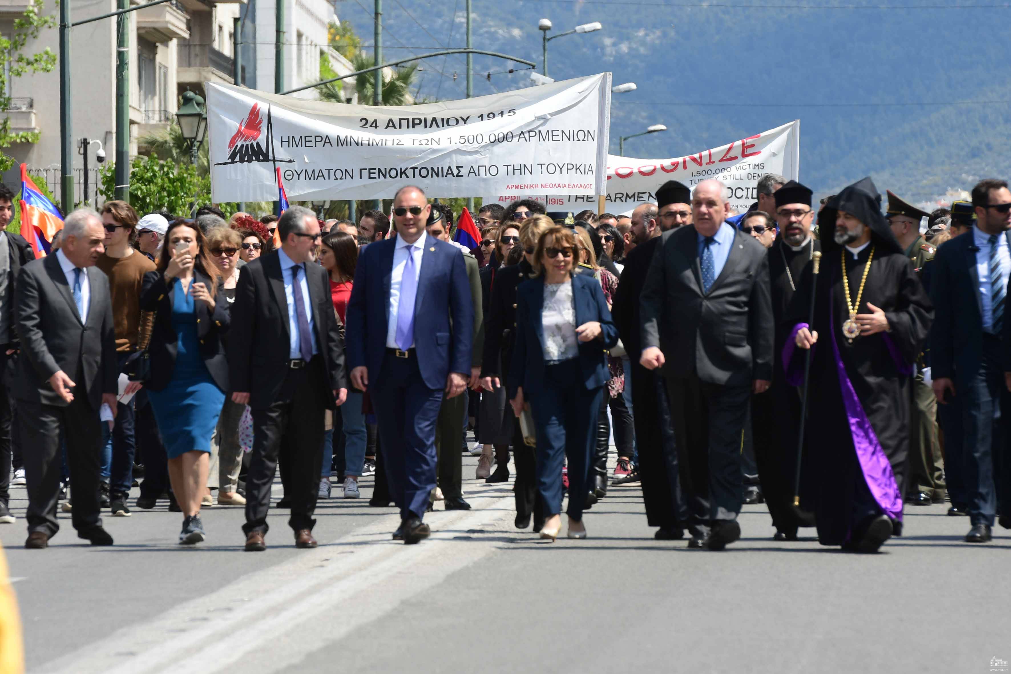 Միջոցառման ավարտին Հ.Մ.Ը.Մ թմբուկահարների, սկաուտների և Աթենքի քաղաքապետարանի նվագախմբի ուղեկցությամբ կայացավ հիշատակի քայլերթ դեպի Աթենքի Սինտաղմա կենտրոնական հրապարակ և, պատվո պահակախմբի ներկայությամբ, Անհայտ զինվորի հուշարձանին ծաղկեպսակի զետեղման արարողություն` ՀՀ դեսպանության, Հունաստանի կառավարության, խորհրդարանի, Ատտիկայի մարզպետարանի, Աթենքի քաղաքապետարանի, հունահայ համայնքի կողմից:Այս մասին հայտնում է ՀՀ ԱԳՆ-ն։