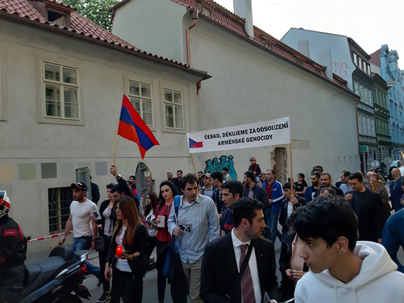 Այնուհետեւ Երուսաղեմի փողոցի վրա գտնվող հայկական խաչքարի մոտ տեղի ունեցավ հիշատակի ձեռնարկ, որին ներկա էին եւ ելույթներ ունեցան Չեխիայի սենատի փոխնախագահ Միլան Շտյեխը եւ Պատգամավորների պալատի փոխնախագահ Վոյտեխ Պիկալը։ Նրանք անդրադարձան հայ ժողովրդի ցեղասպանությանը, կորուստներին, բայց նաեւ հավատով խոսեցին նոր Հայաստանի ապագայի մասին։
