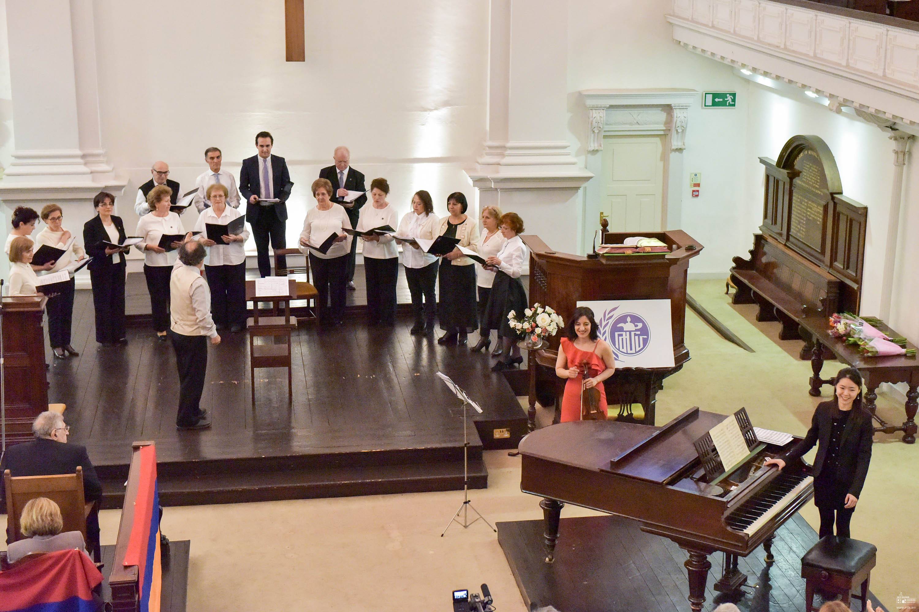 Հիշարժան երեկոն շարունակվեց համերգային ծրագրով. մատուցվեց բարձրաճաշակ եւ բարձրարվեստ մշակույթ: Տաղանդաշատ օպերային երգչուհի, մեցցո-սոպրանո Անայիս Հեղոյանը կատարեց Կոմիտասի եւ Կ.Առքելյանի աստեղծագործություններից, իր գեղեցիկ ձայնով հիացնելով հանդիսատեսին: Բուռն ծափողջյուններով դահլիճը դիմավորեց նաեւ ճանաչված ջութակահարուհի, բազմաթիվ միջազգային մրցույթների դափնեկիր, Շվեդիայում, Գերմանիայում, Ֆրանսիայում, Կանադայում, Մեծ Բրիտանիայում եւ այլ երկրներում մենահամերգներով հանդես եկած Անի Բատիկյանին. հնչեցին Կոմիտասի, Ա.Խաչատուրյանի, Շումանի եւ Ա.Կռոլի ստեղծագործություններից: Լոնդոնի «Կոմիտաս» կամերային երգչախմբի խմբավար, կոմպոզիտոր, երգիչ Գրիգոր Նաջարյանն իր հզոր ձայնի անկրկնելի հնչողությամբ կատարեց Կոմիտաս: