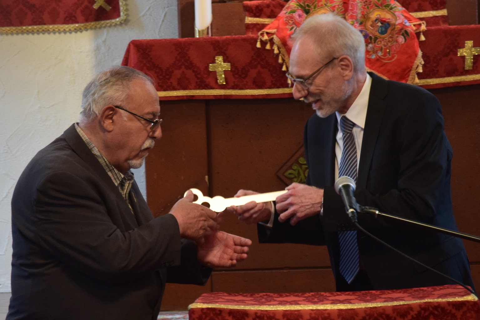 Միջ-եկեղեցական արարողութեան ընթացքում, որն ուղեկցւում էր աւետարանական եւ հայկական հոգեւոր երաժշտութեամբ, տեղի աւետարանական համայնքի ատենապետ Վոլֆգանգ Այխմիւլերը եկեղեցու խորհրդանշական բանալին յանձնեց համայնքի ամենահին անդամներից եւ Սուրբ Խորանի երկարամեայ սպասաւոր բարեշնորհ Արման սարկաւագ Փիլիպոսեանին: Արարողութեան աւարտին ողջոյնի խօսքեր արտասանեցին Գերմանիայի Հայոց Թեմի Առաջնորդ Գերաշնորհ Տ․ Սերովբէ Եպիսկոպոս Իսախանեանը, Վիւրթեմբերգի Աւետարանական Եկեղեցու Եպիսկոպոս Ֆրանկ Օտֆրիդ Եուլին եւ Գէօփինգէնի կառավարող քաղաքապետ Գվիդո Թիլը: