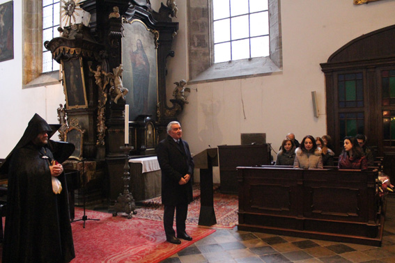 Նախքան Նարե Արղամանյանի ելույթը ներկաներին դիմեց Չեխիայում Հայ առաքելական եկեղեցու հոգեւոր հովիվ Բարսեղ վարդապետ Փիլավչյանը, ով նշեց, որ այսօրվա համերգը նվիրվում է Սումգայիթի եւ Բաքվի անմեղ նահատակների հիշատակին, որից հետո կատարեց հոգեհանգստյան կարգ։