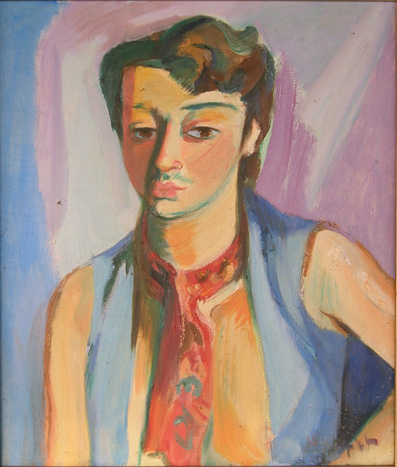 Զգեստս սև էր, ուսերիս իր դեղնականաչ ժակետը գցեց, ասելով, որ մազերիս բաց գույնի և զգեստիս հակադրությունը խիստ է: Այդպես էլ պատկերեց ինձ`աթոռին նստած, գլուխս ափիս հենած, իր ժակետն ուսերիս: Ասաց, որ դիմանկար չի անում, դա իր ժանրը չէ, ,,Մտորում,, է կոչելու: