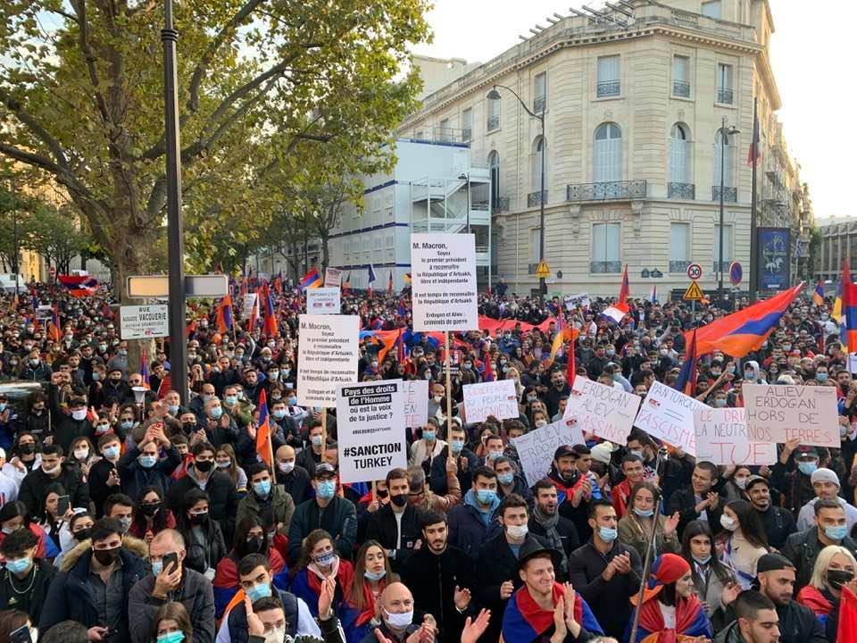 Այսօր աննախադեպ ցույց է տեղի ունեցել Փարիզում, որին մասնակցել են ֆրանսահայ համայնքի բազմահազար ներկայացուցիչներ։ Հանրահավաքի մասնակիցները նախ Ազգային ժողովի մոտ պահանջել են Արցախի անկախության ճանաչում, ապա երթով եւ Հայաստանի երկարավուն դրոշի ծածանումով, քայլերթով հասել են մինչեւ Ադրբեջանի դեսպանության հարեւանությամբ գտնվող հրապարակ, ուր հնչել են Ադրբեջանի եւ Թուրքիայի ագրեսիվ քաղաքականությունը քննադատող ելույթներ։