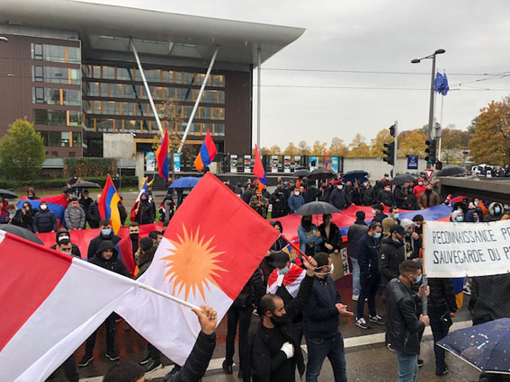 Երեկ՝ հոկտեմբերի 23-ին ֆրանսիական Ստրասբուրգում հազարավոր հայեր հավաքվել էին իրենց բողոքն արտահայտելու Եվրոպական կառույցների լռության պատնեշը քանդելու նպատակով եւ ադրբեջանա-թուրքական ագրեսիան դատապարտելու եւ պատերազմը կասեցնելու պահանջով։ Ելույթ ունեցողները կոչ են արել Մարդու Իրավունքների Եվրոպական դատարանին եւ Եվրոպական Խորհրդարանին քննադատել Ադրբեջանի եւ Թուրքիայի ագրեսիվ քաղաքականությունը, հայ ռամազմագերիների նկատմամբ իրականացվող անմարդկային բռնությունները եւ կասեցեն պատերազմը։