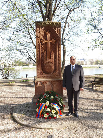 Ապրիլի 24-ին Վիեննայի Սբ. Հռիփսիմե Հայ Առաքելական եկեղեցու բակում տեղակայված ցեղասպանության զոհերի հուշարձանի մոտ Ավստրիայում և Սլովակիայում ՀՀ դեսպան Արմեն Պապիկյանի և դեսպանության դիվանագետների կողմից կատարվեց ծաղկեպսակի զետեղման արարողություն։